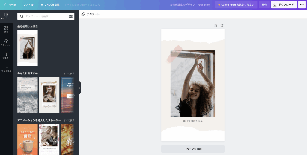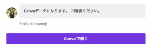 開くと紫色の「Canvaで開く」というボタンがあるのでクリックします。