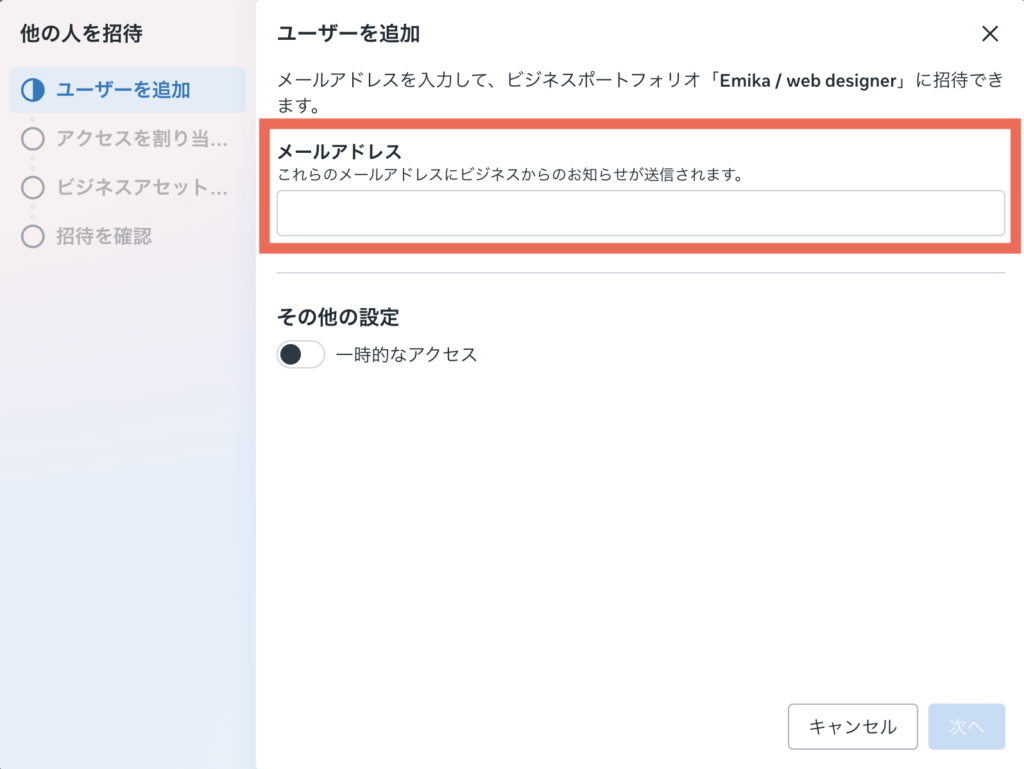 作業③投稿代行の担当者をMeta Business Suiteに招待