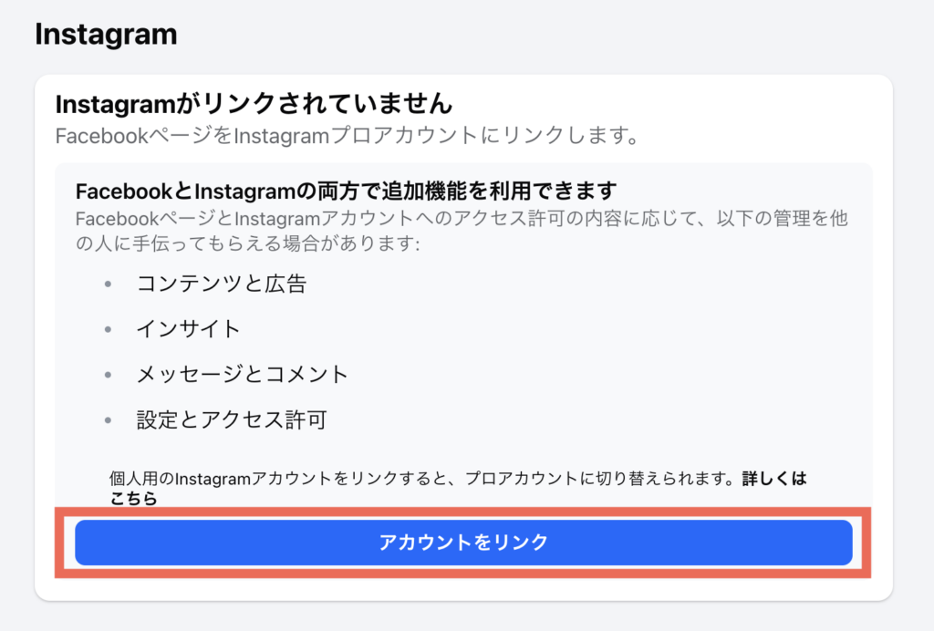Instagram投稿代行を行なってもらうには、Facebookページが必要です。