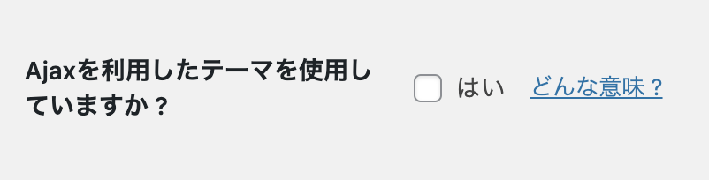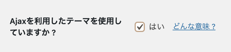下にスクロールしていくと、「Ajaxを利用したテーマを使用していますか?」という項目があります。