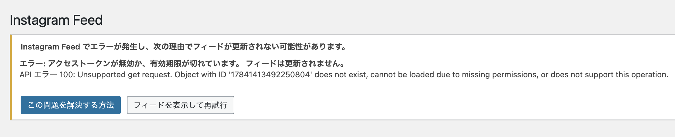 プラグイン「Smash Balloon Social Photo Feed」を使ってみたけど、投稿(フィード・サムネイル)が表示されない!ということが起こる時があります。