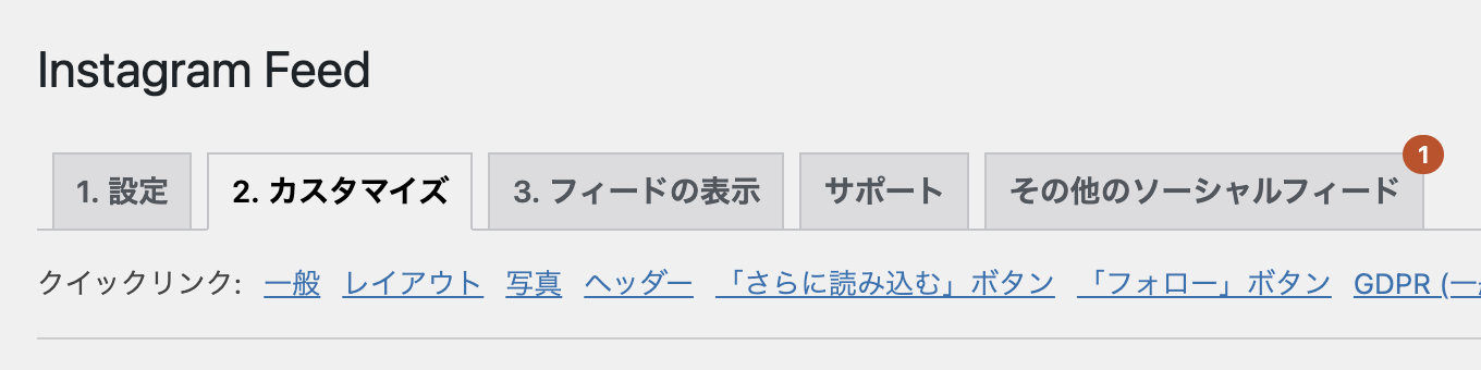 メニュー>Instagram Feed>カスタマイズを開きます。