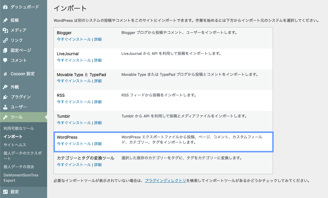 【失敗】WordPress記事の移行ができるプラグイン「DeMomentSomTres Export」