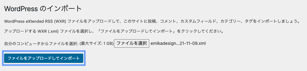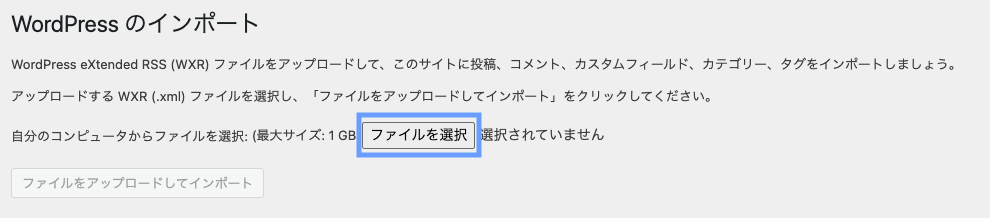 カテゴリーはすべてを選ぶこともできますし、上記で述べたように、一部の記事を移行したい場合は、先ほど作成した「move」というカテゴリを選択したりもできます。