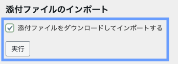 添付ファイルのインポートにチェックを入れて、最後に「実行」をクリックします。