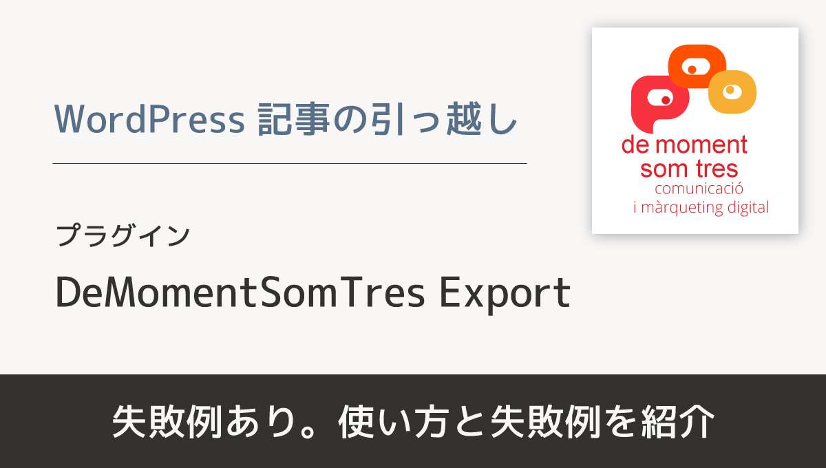 WordPressで記事のみを引っ越ししたい方に向けて、簡単に移行ができるプラグイン「DeMomentSomTres Export」の使い方と、失敗したことをご紹介します。