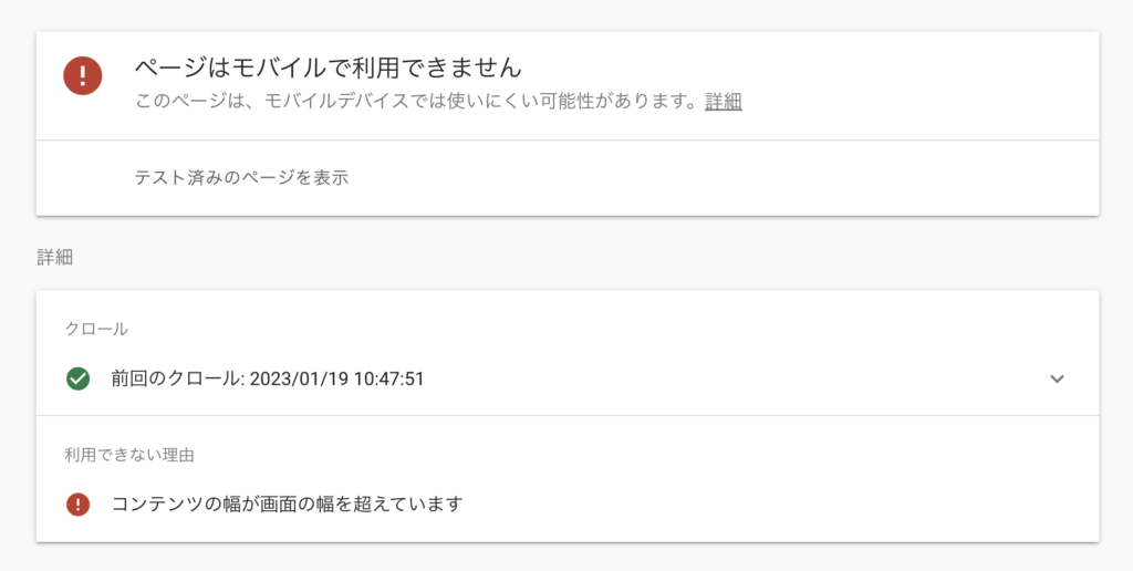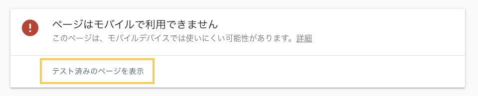 モバイルフレンドリーテストで、「テスト済みのページを表示」というところをクリックすると、
