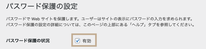 設定画面を開いたら、パスワード保護の状況の「有効」にチェックを入れます。