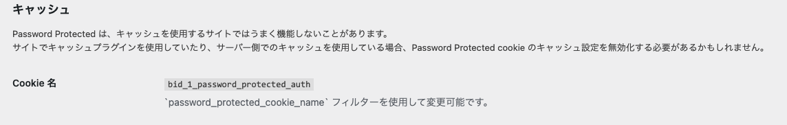 Password Protectedは、キャッシュ機能のあるプラグインや、レンタルサーバーを利用している場合は、うまく機能しないことがあるので、Cookieの除外設定が必要です。