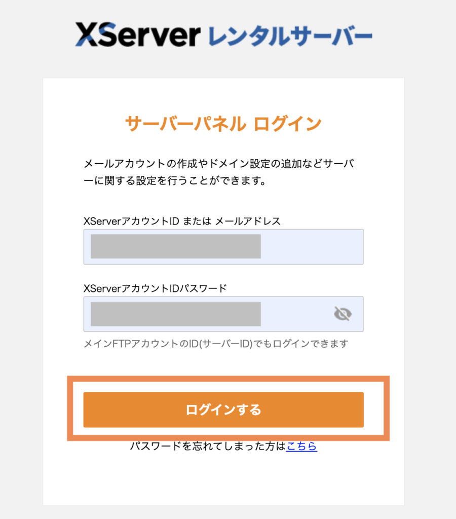 まずはいつもどおりエックスサーバーのサーバーパネルにログインします。