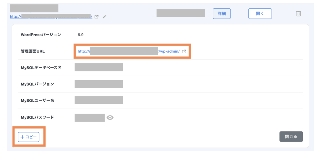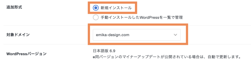 後半→サブディレクトリ(これから作るサイトのURLを入力する)
