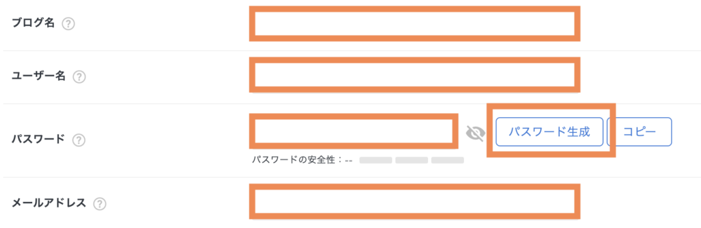 パスワード:ログインに必要なパスワード。強力なほうが好ましいです。