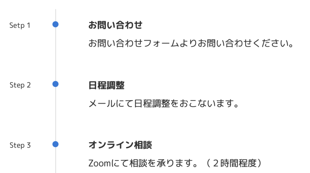 お申し込みの近くにお申し込みまでの手順(フロー)を載せたり、そもそもお申し込みのためのツールを誰でも簡単に使えるものにしたり、お客様をおもてなしするイメージでサポートしてあげましょう。
