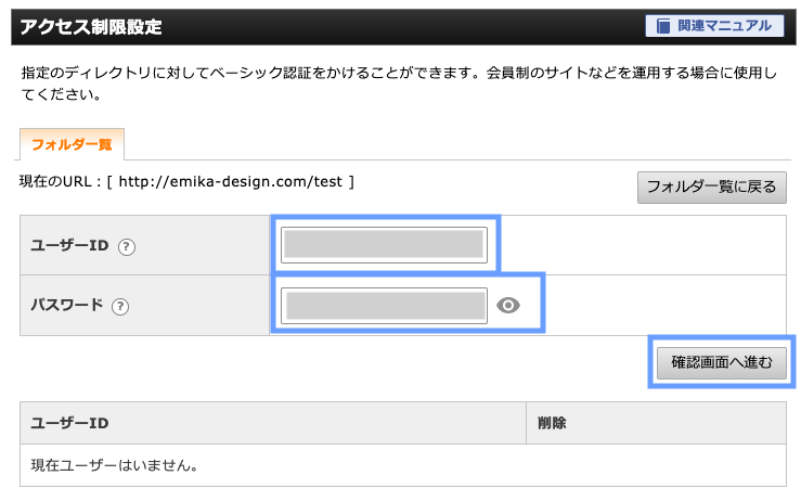 このIDとパスワードを知っている人のみがサイトにアクセスできるようになります。