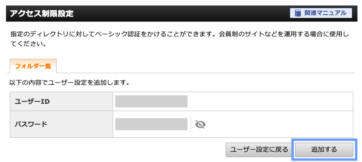 ユーザーIDとパスワードを設定します。
